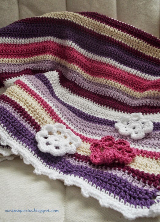 Faltava acabar o rebordo porque ainda não me tinha decidido como finalizar esta manta e, claro, rematar as pontas…