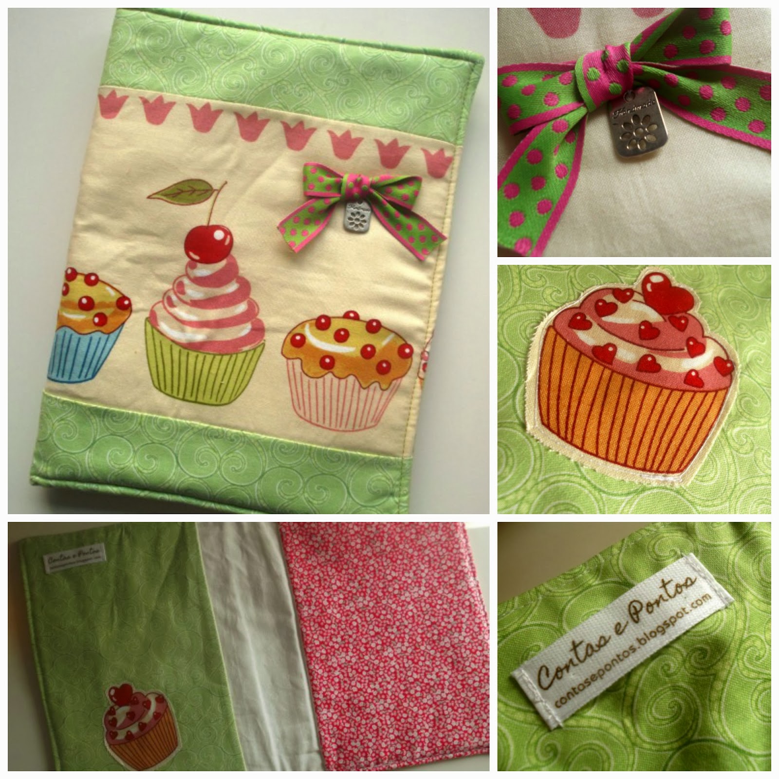 O motivo são os cupcakes e faz parte do tecido das princesas mas eu achei que eram ideais para forrar um caderno com receitas, e porque não receitas simples para fazer com os mais pequenos.