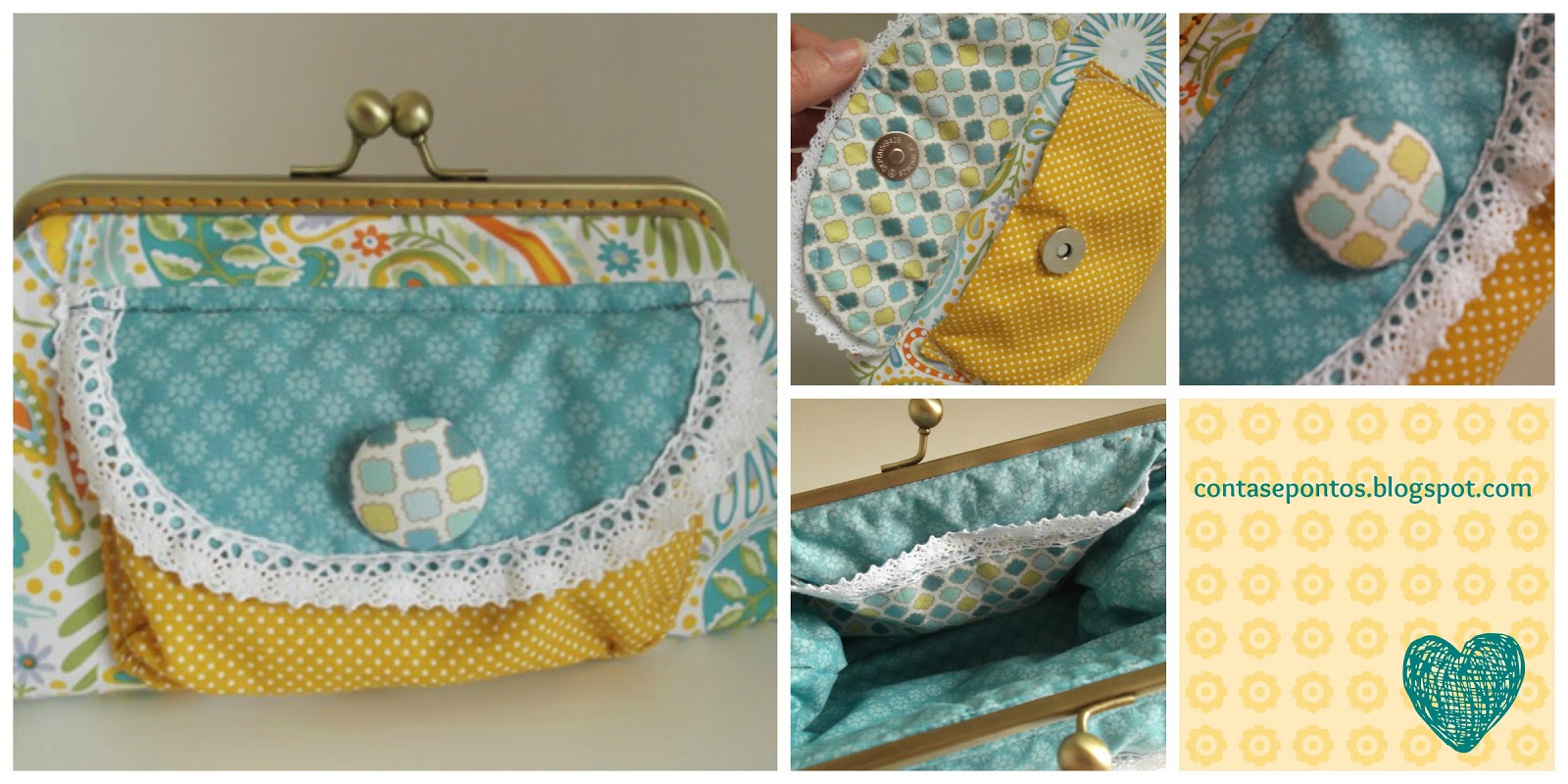 Não me canso de fazer estes estojos e estas bolsas com fechos metálicos.