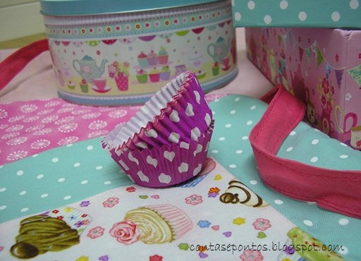 Juntei ao avental, ou melhor, guardei o avental numa lata que já tinha comprado no ano passado (só porque tinha achado gira e para a qual tinha a certeza que havia de dar utilidade) e que combinou perfeitamente. Acrescentei ainda umas formas de papel e uns cortadores de bolacha.